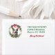 Auf diesem Holiday-Rücksendelabel ist ein australischer Rinder-Hund in einem grünen Weihnachtskranz mit einem roten Bogen oben gerahmt. Ihr benutzerdefinierter Text ist rechts grün, unten steht ein Textfeld für einen Gruß in rot.