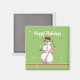 Magnet mit meinem Design eines Schneemanns, der eine Sonnenbrille trägt, einen Bonbonstock hält und seinen Hut kippt, während ich allen "Happy Holidays" wünsche.