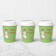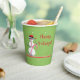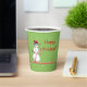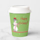 Feierlich aussehende Urlaubspapiere mit meinem Design eines lächelnden Schneemanns, der eine Sonnenbrille trägt und einen Bonbonstock auf grünem Hintergrund trägt.