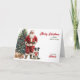 Auf der Vorderseite dieser niedlichen Holiday-Grußkarte trägt ein Border Collie Dog einen roten Bogen und sitzt neben dem Weihnachtsmann. Daneben gibt es einen geschmückten Weihnachtsbaum, einen Korbweidekorb und Packungen. Der rote Text rechts steht für "MERRY CHRISTMAS", darunter ist "HAPPY NEW YEAR" grün. Ihre eigene Unterschrift ist unten grün und rot. Der gesamte Text, innen und außen, kann leicht auf alles geändert werden, was man möchte. Im Dog Village können Sie mehr Bilder von Border Collie sehen, sowie andere Bilder von der Rasse.