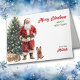 Auf der Vorderseite dieser niedlichen Holiday Grußkarte trägt ein bezaubernder Cairn Terrier einen roten Bogen und sitzt am Fuß des Weihnachtsmannes. Daneben gibt es einen geschmückten Weihnachtsbaum, einen Korbweidekorb und Packungen. Der rote Text rechts steht für "MERRY CHRISTMAS", darunter ist "HAPPY NEW YEAR" grün. Ihre eigene Unterschrift ist unten grün und rot. Der gesamte Text, innen und außen, kann leicht auf alles geändert werden, was man möchte. Im Dog Village können Sie weitere Bilder von Terrier sowie andere Aufnahmen der Rasse sehen.