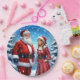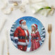 Der Weihnachtsmann und Frau Claus stehen inmitten eines malerischen, schneebedeckten Waldes und erwecken Feiertagsfreude und Beifall in einer ruhigen Winterlandschaft.