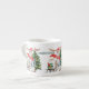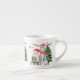 Personalisierte Tasse (Espresso-Tasse) für die Ferienzeit.Das Design zeigt eine niedliche Illustration des Weihnachtsmannes und seiner Helfer mit einem Haufen Geschenke, einem Zwerg und verziertem Weihnachtsbaum. Die Vorlage ist Set für Sie, um den Kindernamen und das Jahr in whimsical Typografie hinzuzufügen.