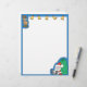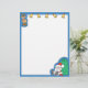 Dieser Cartoon-Letterhead ist mit einem Rentier und fünf goldenen Glocken über der Oberseite ausgestattet, der Weihnachtsmann sitzt mit einer großen Tüte Spielzeug in der unteren rechten Ecke und einem blauen Rand.