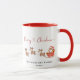 Eine festliche Weihnachtskaffee oder heiße Kakao-Tasse mit einer Illustration des Weihnachtsmannes, der Rentiere reitet, umgeben von einem lustigen Urlaubsstil. Personalisieren Sie diese gemütliche Tasse mit Ihrem Familiennamen oder dem eigenen Text für eine besondere Touch. Es ist das perfekte Geschenk für Kinder, Enkel oder Familienmitglieder während der Ferienzeit!