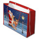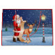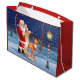 Weihnachts-Weihnachtsmann und Reindeer-Geschenktaschen zeigen den Weihnachtsmann, der seine Liste mit seinen Rentieren in einem Winterwunderland überprüft. Von Evco Holidays entworfen www.zazzle.com/store/evcoholidays