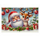 Weihnachtsmann und Rentier in der Weihnachtslandschaft Snowy - Urlaubskunst mit Diese herzerwärmende Urlaubsanschauung erfasst eine festliche Szene mit dem Weihnachtsmann und seinem Rentierbegleiter in einer verschneiten Landschaft. Der Weihnachtsmann, mit seinem klassischen weißen Bart und seinem roten Hut, spielt flüchtige Blicke von der links Seite, während der Rentier, der mit Geweih geschmückt ist, auf der rechten Seite steht. Umgeben sind sie Feriendekorationen, darunter Ornamente und Garnelen, die der Winterszene eine fröhliche, gemütliche Touch verleihen. Ideal für die Weihnachtsdekoration, strahlt dieses Kunstwerk Urlaubsstimmung und Wärme aus.