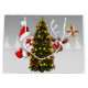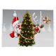 Weihnachtsmann und Rentiere hinter einem Weihnacht Große Geschenktüte