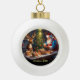 Weihnachtsmann und Rentiere machen Lebkuchenhaus Keramik Kugel-Ornament