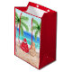 Ein Weihnachtsmann in Wasserfarbe, der auf einem Strand sitzt, mit einem Schneemann aus Sand. Diese Geschenktasche ist niedlich für Ihren Snowvogelfreund oder jeden, der in einem warmen Staat oder Land lebt.