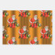 Dieses lebendige und farbenfrohe Set von Weihnachtsverpackungspapier zeichnet den Mann selbst aus: den Weihnachtsmann. Er ist in seinem traditionellen Anzug und seiner Weihnachtsmannmütze aus rotem Samt gekleidet und lehnt sich zu seinem Weihnachtssack hin - natürlich voller Spielzeug! Dieses Set aus drei Verpackungen weist das gleiche Santa-Muster auf einem Trio aus verschiedenen, festlichen Farben auf, darunter Gold auf dem oberen Blatt, Grün in der Mitte und ein sehr fröhliches Rot auf dem dritten Blatt.