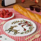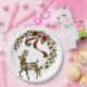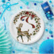 Eine elegante Weihnachtsplatte mit einem goldenen Rentier mit einer farbenfrohen Spur aus goldenen Sternen, rotem Bogen und grünem Heiligen in Form eines Weihnachtskranzes. Diese Weihnachtszeitung wird Ihnen während der Ferienzeit eine Touch Flair und Stil zu Weihnachten hinzufügen.