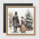 Weihnachts Vater und Kind Magnetkarte. Vintage Kleidung und Oberhut. Dekorierter Weihnachtsbaum mit Geschenken im Hintergrund. Warum eine Karte kaufen, wenn Sie auch eine Dekoration gleichzeitig kaufen können? Eine magnetische Weihnachtskarte und Dekoration werden diese besondere Person in Ihrem Leben sicherlich begeistern. Eine Magnetkarte kann auf dem Kühlschrank oder auf anderen Magnetflächen platziert werden, um die Anzeige zu erleichtern und wiederholt als Dekoration verwendet zu werden.