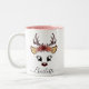 Eine niedliche Rentierwand mit Blume schmückt diese Tasse. Macht ein niedliches Weihnachtsgeschenk für ein Mädchen. Personalisieren Sie diese einzigartige Tasse für ein Mädchen, das Sie kennen.
