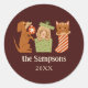 Niedlicher und festlicher Weihnachtstipensticker mit handgezeichneter Darstellung von Katzen und Hunden im Urlaubsthema. Der Hintergrund ist rot.