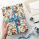 Ein Portrait eines wunderschönen Airedale Terrier Hundes mit einem rot-weißen Weihnachtsmann, das im Muster dieses Weihnachtsgeschenkpapier steht. Das Portrait wird auf einem Hintergrund von grünen heiligen Blätter und roten Beeren platziert. Feiern Sie Weihnachten auf die Terrier Weise!