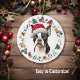 Hier ist ein niedliches personalisiertes Ornament für alle, die einen kleinen Boston Terrier Dog Lieben. Die Vorderseite hat eine Aquarellfarbe Boston mit einer Weihnachtsmannmütze. Das Bild ist in einem farbenfrohen Kreiskranz gerahmt, der aus verschiedenen Holiday-Bildern besteht, darunter ein Schneemann, Glocken, Bonbons, Strumpf, Heilige und vieles mehr! Auf der Rückseite des Ornaments befindet sich das gleiche Kranzbild mit dem eigenen Text in grün und rot.