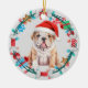 Weihnachtsmannmütze Bulldog Welpenkraut Keramik Ornament