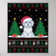 Weihnachtsmannmütze Malteser Hund Weihnachtsbaum Lichter Ugly Sweater