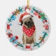 Weihnachtsmannmütze Mops Knochenkranz Keramik Ornament