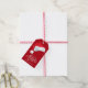Personalisierte Weihnachtsgeschenke in Weihnachtsmannmütze - Redet 'Frohe Weihnachten' in eleganten, Vintagen Kalligraphiebriefen. Unten hat einen personalisierten Namen im skurrilen Stil. Oben ist ein roter Hut aus dem Weihnachtsmann. Auf heilig rotem, solidem Hintergrund, der in jede Farbe geändert werden kann. Dasselbe auf der Rückseite. Perfekte Weihnachtsmarken, um allen Weihnachtsgeschenke einen festlichen Feiertag hinzuzufügen, bevor sie per Post verschickt werden. Whimsical, Spaß Weihnachten Weihnachtsfeiertag Tags für Geschenke.