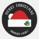 Dieses runde Etikett mit Weihnachtsmannmütze-Aufkleber hat einen schwarzen Hintergrund mit einem schlichten Hut des Weihnachtsmanns in der Mitte, mit einem fröhlichen Weihnachtsgrüßen oben und dem Familiennamen unten. Personalisieren Sie dies mit Ihrem eigenen Gruß und Familiennamen. Dieser Aufkleber eignet sich hervorragend für Weihnachtskarten-Umschläge oder Geschenke für den Cookie-Austausch.