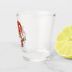 Dieses Holiday-Shooting-Glas hat ein Bild von einem niedlichen Gnome-Elf in einer roten und goldenen Rentiermuster-Weihnachtsmannmütze gekleidet. In der einen Hand hält er ein Weihnachtsweinglas und in der anderen ein rot-weißes, gestreiftes Zuckerrohr. Spaß für die Saison!