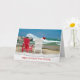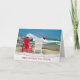 Der Weihnachtsmann kleben auf einem weißen Adirondack-Sessel an einem Strand mit gerissenen Kanten. Text ist bearbeitbar.