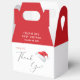 Niedliche Rot-Weiß-Gastgeschenk-Box für Ihre Weihnachtszeit Babydusche Favoriten mit "Santa Baby" und "A Merry Little Danke" in einem eleganten Drehbuch mit einem Herzschlag und einer Aquarellillustrierung eines roten Weihnachtshutes. Persönlich mit dem Namen und dem Duschdatum der Mutter in der modernen weißen Typografie.