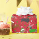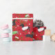 Niedliche Weihnachtshunde mit Schwarz-, Bräunungs- und Apfelmänteln in festlichen Urlaubssoutiquen, Weihnachtsmannmützen und Raute-Pullover mit verstreuten Weihnachtsschmuckstücken.
