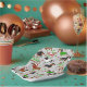 Niedliche Weihnachtshunde mit Schwarz-, Bräunungs- und Apfelmänteln in festlichen Urlaubssoutiquen, Weihnachtsmannmützen und Raute-Pullover mit verstreuten Weihnachtsschmuckstücken.