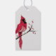 Ein schöner Kardinal auf einem modernen minimalistischen Geschenktag. Originelle Handbemalung in Aquarell.
