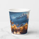 Dieses Papier Cups zeigt ein tief verschneites Dorf in den Bergen im Abend. Die Leute gehen dick gekleidet über den festlich beleuchteten Weihnachtsmarkt. Ein romantisches Motiv für alle, die Weihnachten Liebe! Hübsche Papiertücher für Ihr Party zu Weihnachten!