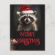 Raccoon wilde Wildtiere fröhlich, rot lustige Weihnachtshucke, Hut Haustier, Schnee kalt Santa Claus, Schneeflocken fröhlicher Winter, Weihnachten niedlich Raccoon