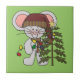 Eine entzückende Weihnachtsmaus in einer roten Strumpfkappe setzt die Schnur der Weihnachtslichter auf den Feiertagsbaum auf Mäusethema-Feiertag T - Shirts, Tassen, Karten, Aufkleber, Taschentaschen, Magneten, keychains, Andenkenverzierungen und -kästen, Wanduhren und andere Feiertagseinzelteile.