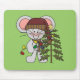 Eine entzückende Weihnachtsmaus in einer roten Strumpfkappe setzt die Schnur der Weihnachtslichter auf den Feiertagsbaum auf Mäusethema-Feiertag T-Shirts, Becher, Karten, Aufkleber, Taschentaschen, Magneten, keychains, Andenkenverzierungen und -kästen, Wanduhren und andere Feiertagseinzelteile.