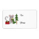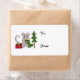 Eine niedliche Szene mit einer Weihnachtsmaus mit einem Strumpf voller Käse. Ein rotes Geschenk und ein Weihnachtsbaum neben ihm. Passen Sie Ihre Wünsche an.