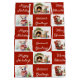 Aquarellfarbene Weihnachtsmäuse auf weißem Hintergrund mit Feiertagstext auf rot.