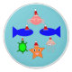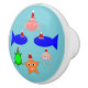Dieser phantastische Keramik-Knopf zeigt eine Sammlung von Meereslebewesen, die Weihnachtsmannmützen tragen. Die Meerestiere umfassen blaue Fische, eine frech aussehende kleine rosa Krabbe, eine gelbe Seesterne, eine funkelnd Qualle und eine niedliche kleine grüne Schildkröte.
