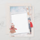 Schlagen Sie diese Seiten in Ihre Weihnachtskarten, um Ihren Lieben in diesem Jahr eine besondere Urlaubnote hinzuzufügen. Ein Vintager Junge und ein Mädchen halten Weihnachtsgeschenke und stehen vor einer Kulisse von Birken. Weiße Seite mit silberner Grenze. Passende Weihnachtskarte im enfrancais Store erhältlich.