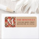 Das Holiday Return Adresseedesign zeichnet sich durch ein rustikales, elegantes Beige-, Bräunungs-, Braun- und Rottartan-kariertes Muster aus, das durch eine für Ihre Familie personalisierte, initiale und individuelle Rücksendeadresse in Monogramm ergänzt wird.