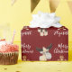 Dieses niedliche Weihnachtsbaumpapier wird unter deinem Weihnachtsbaum perfekt aussehen. Das Design ist mit einem niedlichen, skurrilen Weihnachtsmädchen und einem Fingerbread-Mann-Keks auf dunkelrotem Hintergrund gestaltet. Personalisieren Sie mit Ihrem Namen.