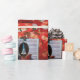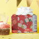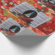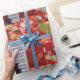 Eine Nahaufnahme einer Weihnachtsmusikbox, die ein Buch ist. Das ist helle und farbenfrohe Sitzen auf den Red Christmas Present's . Das ist auf Weihnachts-Wrapping Paper .