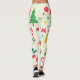 Das Bild ist ein Muster von Weihnachtsbildern auf einem cremefarbenen Hintergrund. Zu den Abbildungen zählen Weihnachtsbäume verschiedener Größen, Ornamente in Rot, Gelb und Grün, Süßkartoffeln, Schneeflocken, heilige Blätter und Beeren, Poinsettias und umhüllte Geschenke. Der Stil ist skurril und kinderähnlich, mit einfachen Formen und hellen Farben.