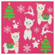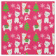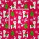 So ein niedliches Weihnachtsgeschmack mit Cartoon-Illustrationen von Lamas, die Weihnachtsmannmützen neben Weihnachtsbäumen, Rentieren und Schneeflocken tragen. Festliches Muster ideal für Weihnachtsprojekte und Heimwerkerarbeiten.