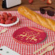 Weihnachtsmuster, Hirsche, Neues Jahr, Streifen, Weihnachten, Ziergegenstände, rot, gelb, gelb und rot, Schneeflocken, Geschenk, Gruß, 2019