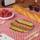 Weihnachtsmuster Rot und Grün Zickzack Streifen Pappteller