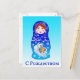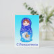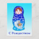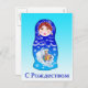 Eine schöne russische Nistdoll (Matryoshka) mit den Worten Frohe Weihnachten in Russisch. Die Schrift ist kyrillisch. Englische Begrüßung