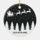 Dieses Ornament zeigt den Weihnachtsmann in seinem Schlitten mit seinen Rentieren, die durch den Nachthimmel fliegen. Passen Sie dieses Ornament für Sie oder als Geschenk an.