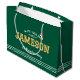 Machen Sie sich mit einem individuelle Name Geschenksack auf Weihnachten gefasst! Dieses festliche Design besticht durch Sportjersey-inspirierte Typografie mit einem Retroblock-Schriftart, einer Weihnachtsmannmütze und Sternen. Personalisieren Sie die Vorlage mit dem Namen des Empfängers, das Jahr, plus Sie können die Phrase 'Chill and be merry' mit Ihrer eigenen Urlaubsnachricht anpassen. Dieses einfache, stilvolle Design ist perfekt für Kinder, Jugendliche, Familien und Freunde! Eine Allover-Geschenktasche mit glänzender oder matter Oberfläche. Druckfarben: orangegelbes Gold, grün, rot und weiß.